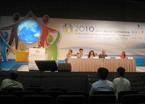 2010年6月10-14日,我系刘颖老师带领07级社会工作系学生孙逸帆、赵珺蓉赴香港参加2010联合世界大会:社会工作及社会发展之愿景与蓝图。本次会议在香港会议展览中心举办,由三个社会工作国际组织国际社会工作学院联盟(IASSW)、国际社会福利协会(ICSW)及国际社会工作人员协会(IFSW)和八个香港本地主办单位将会联合筹办。会议吸引了113个国家及地区约3000人参与,各国社会工作领域人士齐聚香港,目的即共同为未来十年的社会工作及社会发展策划一份行动纲领(Action Agenda)。