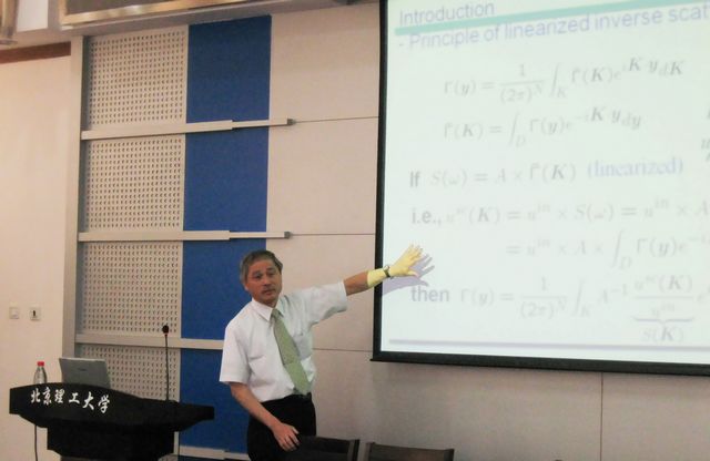 广濑壮一教授为广大师生作了关于逆解波动方程构建扫查图像获取缺陷形状的超声波无损检测新方法的学术讲座,并就无损检测与评估的新概念展开了讨论。出席此次学术交流会议的还有北京航空航天大学周正干教授。