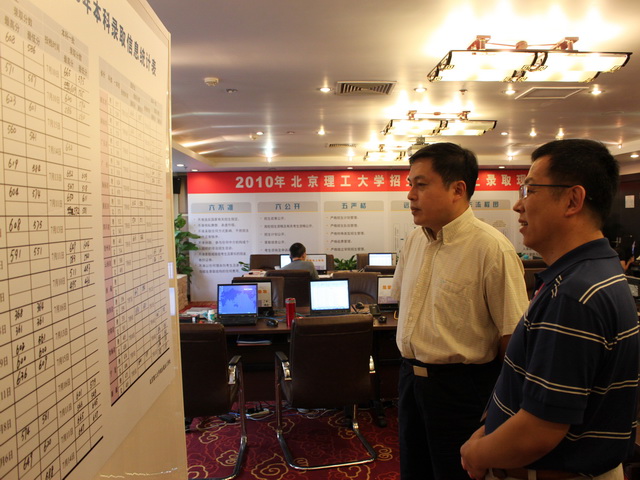 接着,胡校长查看了设置在招生录取现场的本科录取信息统计表。胡校长对我校在各省录取情况的连年突破和生源质量的不断提高表示满意;对录取现场的井然有序、招生纪律的严格审慎、招生人员的认真细致、录取信息的及时到位表示赞赏。