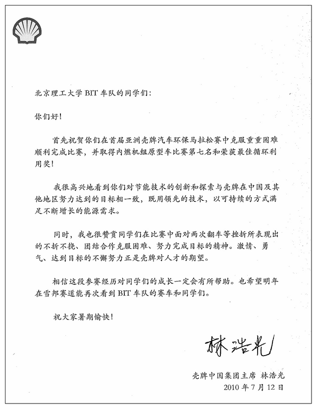壳牌中国集团主席的致信