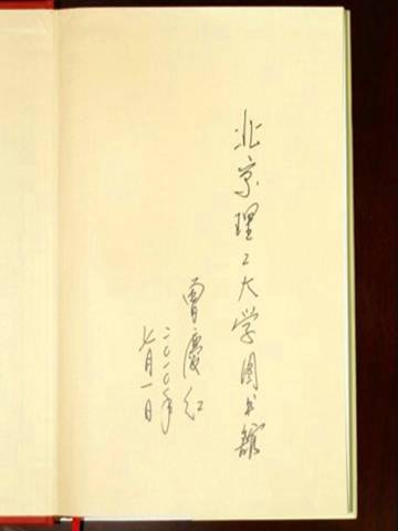 我校70周年校庆前夕,原国家副主席、我校校友曾庆红同志向我校图书馆捐赠了最新出版的《关于党的建设工作》一书并亲笔题词。