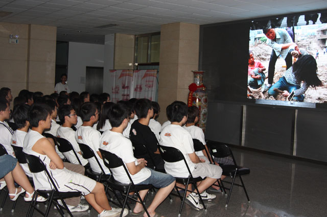 接着,负责本次科技创新暑期集训的董大海老师当场在写有“不舍舟曲”的条幅上写下“心系舟曲,我们心连心!今天我们呆在基地一秒,明天我们造福祖国一方”的话语,激励大家努力学习,回报社会,为中华崛起而读书。同学们纷纷在条幅上签名,那一个个名字,墨透纸背,像是坚定的在说“我能!”。