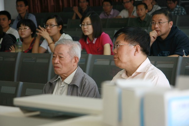 与会师生认真听取了宋振铎少将的讲解,就将军提出的精确制导武器系统中目标自动识别等关键技术进行了热烈的交流和讨论,并与宋振铎少将合影留念。