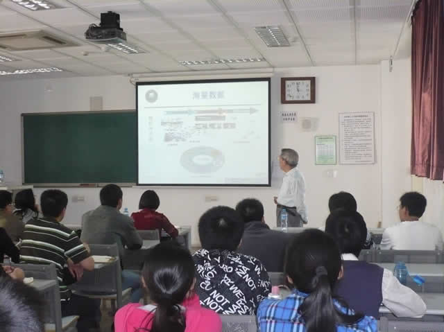 计算机学院迎接校庆举办的系列学术活动之一,中国科学院计算技术研究所史忠植研究员于2010年9月23日下午3点在研究生教学楼303教室为计算机学院师生做了题为“基于云计算环境的海量数据挖掘”的专题学术报告。