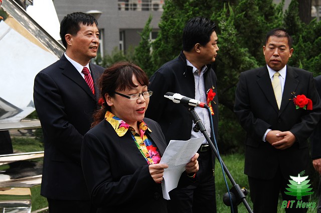 北京市师德先进个人、教师代表薛庆教授在发言中说:哲学家韩愈为我们留下了“书山有路勤为径,学海无涯苦作舟”的名言。站在雕塑旁,我们将铭记古人的名训。所谓“勤为径,就是勤学,好问、乐读、善思,勤读书,勤积累,勤思考,勤钻研,努力达到校训“德以明理,学以精工”的境界。站在雕塑旁,我们想到前辈和学长,他们用朴实无华,孜孜以求的精神,踏踏实实,勤勤恳恳的为人之道,求真务实的治学态度就像一面旗帜,鼓舞着我们向知识的高峰攀登。站在雕塑旁,我们感受到优秀的研究型大学特有的校园文化。站在雕塑旁,我们感受到使命和责任,我们要以毛二可等先进人物为榜样,追求卓越,努力做“学生欢迎、家长满意、同行敬佩”的教师。