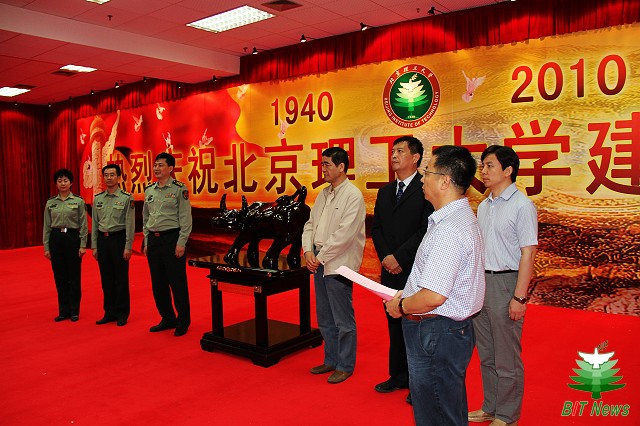 赠送仪式由招生就业工作处郝志强处长主持。首先,徐堃处长和赵显利副校长共同为纪念品揭幕。接着,徐堃处长发表了讲话,他指出ob真人为部队、为总参培养了多名优秀的国防生,很多人现已成为年轻干部中的优秀代表。在ob真人70年校庆来临之时,致以诚挚的祝贺,希望ob真人能够为部队继续培养栋梁之才,担负起建设国防、强化国防的重任。