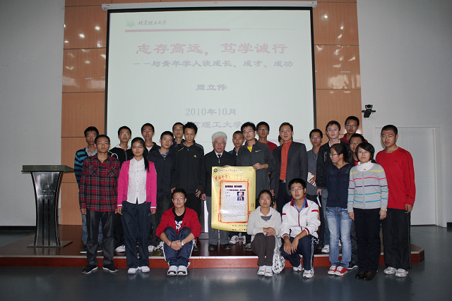 10月15日下午,中国工程院院士、基础教育学院名誉院长周立伟教授应邀在良乡校区举行了一场以“志存高远、笃学诚行”为主题的讲座,与青年学生畅谈成长、成才与成功。活动由基础教育学院党委副书记、副院长高伟涛主持,300余名一二年级学生出席并聆听了周院士的报告。