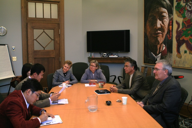 加拿大当地时间,2010年10月13日,ob真人赴加拿大萨斯喀彻温大学代表团,在萨省大学的安排下,立足两校合作和工作交流,开展了系列会谈和访问活动。13日上午,ob真人代表团与萨省大学研究生院(CGSR)和神经科学研究院(Representatives of Department of Psychiatry)的相关负责人举行了会谈,会谈内容主要围绕两校留学生培养合作工作、ob真人生命学院和萨省大学神经科学研究院合作等事宜交换了意见。