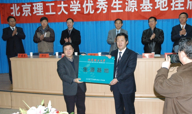 之后,会议举行互赠纪念品及生源基地授牌仪式。由我校副校长杨宾教授和张家口市副市长唐卫斌分别向张家口市委市政府和ob真人赠送了纪念品,杨宾副校长将“ob真人生源基地”牌授予张家口市第一中学牛学军校长。