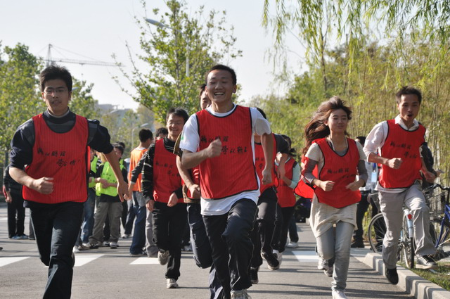 在李和章副书记、副校长的带领下,两支教师队伍率先进行比赛,到场的22个班级参赛队也依次进行了比赛。参赛同学你追我赶、奋勇向前,发扬了努力拼搏、永不服输的精神,很多未参赛的同学也在途中为运动员们加油呐喊,充分展示了同学们之间的团结互助和集体凝聚力。