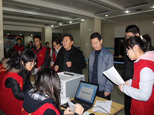 大学生招生就业协会的志愿者协助用人单位报到