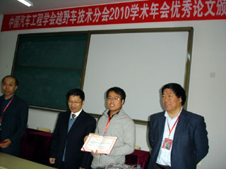 此次年会共收到投稿320篇, 200余篇论文入选论文集。越野车技术分会秘书处组织专家评选出11篇优秀论文,并在会议闭幕式上由学会领导为优秀论文的作者颁奖。