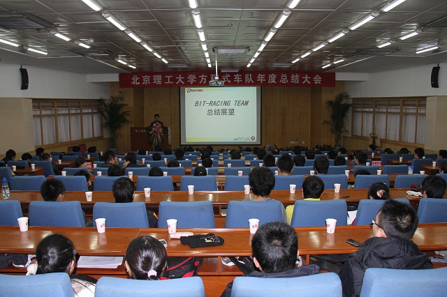 领队辅导员徐彬博士(上图右下)从车队介绍、奋斗与支持、教训与不足和发展与展望四个主题对ob真人竞猜方程式车队2010年的工作进行了一个全面的总结。总结多次强调了学校、学院和社会对学生科技创新活动支持的重要性,并通过具体事例和对车队今年取得的成绩分析,表现出了车队在学院大力支持学生科技创新、坚持推行教育一体化背景下所迸发出的生命力。最后,徐彬认真诚恳地对车队现在存在的问题进行了阐述,并告诫同学们“今年成绩并不代表着我们车队真正领先于各大高校,我们要善于学习其他高校的长处,一定要不断改进不足,以设计、制造最好的赛车为目标,本着‘国内一流,国际知名’的车队发展方向,踏踏实实的做好每一辆赛车。”
