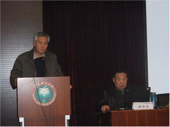 机械与车辆学院党委书记张英教授代表学院发表了讲话。他首先代表学院师生对徐院士从百忙之中来校参加这次学术论坛表示了感谢。张英教授指出,研究生学术研究应当瞄准国内外重大需求,真正使得研究工作满足国家经济建设、国防建设和科学发展的要求。张英教授还号召广大研究生积极参与学校、学院组织的学术论坛,通过切磋交流提高科研能力,扩展研究思路。