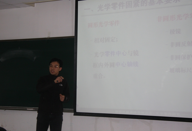 为提高青年教师的教学水平,促进青年教师的交流和成长,经过光电学院青年教师联谊会、分团委的前期准备,2010年12月4日下午,光电学院成功举办了青年教师教学基本功比赛。本次比赛光电学院大部分青年教师,近30人报名参赛,分为四组,邀请了光电学院有丰富教学经验的8名教授担任评委。本项活动由光电学院副书记副院长邹锐主持。教务处副处长曹峰梅、光电学院党委书记韩宝玲、副院长郝群,分别在比赛前讲话。