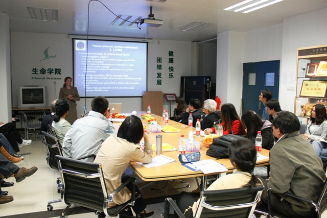 首先,Crawford教授结合自己的研究工作,主要介绍了在其博士期间首次发现了阿兹海默病的基因突变的研究成果。目前,Crawford教授致力于颅脑外伤的蛋白质组学研究,这也是她今天讲座的主要内容,即运用蛋白质组学的方法发现颅脑外伤的生物标志物,揭示颅脑外伤相关蛋白的分子机制,为临床诊断、治疗和预防提供了有效的指示。此外,Crawford教授还详细介绍了她实验室的工作,对同学们的科研工作有实际意义的指导.