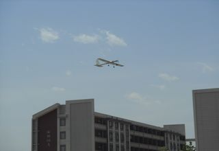 在基础教育学院支持下,由龙腾老师、肖雄老师指导,2009级刘振畅等5名同学独立完成的搭载大角度矢量推力装置的模型机“Falcon”于5月1日成功完成试飞。