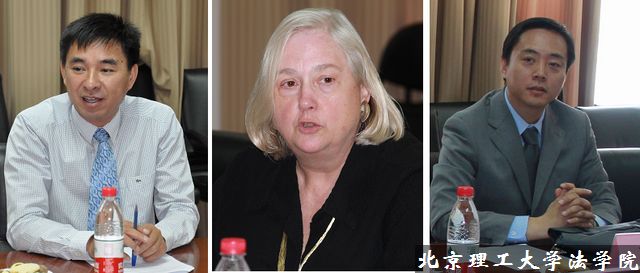 图为ob真人竞猜法学院副院长李寿平教授、美国密西西比大学法学院Joanne Gabrynowicz教授以及哈尔滨工业大学法学院李斌教授