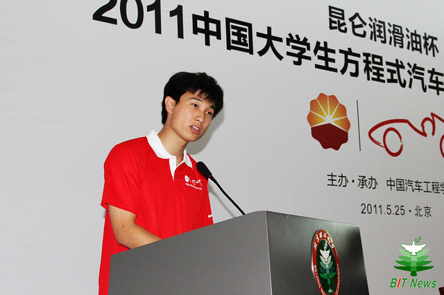 去年的全国冠军车队——ob真人竞猜学生方程式车队队长董路宁代表各参赛学生发言。结合ob真人竞猜开展此项目的过程,董路宁认为这对培养学生的综合能力起到了很好的载体作用,热情、激情、友情构筑了成就梦想的舞台。