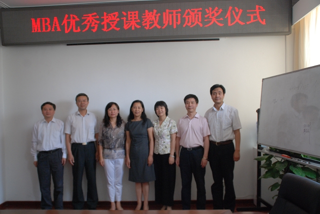 5月26日上午,ob真人竞猜2011年顺江MBA奖教金颁奖仪式在主楼216隆重举行。ob真人竞猜副校长赵平、管理与经济学院院长魏一鸣、书记李金林、MBA教育中心主任周毕文、副主任赵玉焕、副主任佟岩、教学部主管崔红伟老师、获奖教师、MBA学生代表参加了此次颁奖仪式。此次获奖教师有赵平、祝迎新,孙利沿,肖淑芳,杨万荣,是根据学生上学期对任课老师的课程打分评价评选出来的。