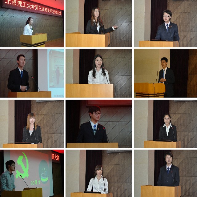 自3月17日大赛启动以来,共收到29个来自我校各学院的学生理论学习创新活动申报项目,经过初评,共有10个活动项目顺利进入决赛。在决赛现场展示及答辩环节中,10个单位依次展示了他们的创新活动。其中,光电学院“党旗国旗在我心”活动中,学生党员走进天安门国旗班,感悟和学习战士们的爱国情怀和使命感。法学院“以评促建 打造多维网络平台”活动以网络交流平台为依托,涵盖了理论学习、形势政策学习、实践活动等在内的多项内容。材料学院的“红色电影配音秀”,同学们在现场精彩的配音,赢得阵阵掌声。信息与电子学院的“红色报刊亭”,长期为学生提供专门场所用来阅览各种报刊、杂志,让大家能够及时、有效地了解最新的时政信息。基础教育学院信息与电子学部的“情系延安忆九十载峥嵘岁月,梦圆良乡领新世纪华夏征程——纪念建党九十周年‘学党史,知党情,跟党走’理论、实践系列活动”更是紧密联系我校两校区办学的实际,将延安精神、理工精神以及良乡精神很好地融为一体,传承创新。