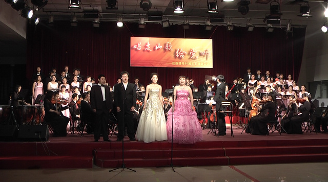 这是5月29日晚7:00在中关村校区新食堂四楼多功能厅举行的“唱支山歌给党听”——交响合唱室内主题音乐会现场传出的声音。该主题音乐会是我校“青春同行 党旗生辉”共青团系统纪念建党九十周年主题教育系列活动之一,由校团委、艺术教育中心主办,校大学生艺术团交响乐团、合唱团承办,校大学生艺术团手风琴团、钢琴团协办。音乐会在催人奋进的交响序曲《红旗颂》的旋律中拉开序幕。