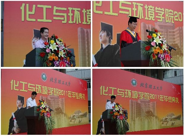 6月20日下午,化工与环境学院2011年毕业生毕业典礼暨香槟酒会在中心教学楼门前隆重举行,学校校友办副主任付大军、化工与环境学院副院长陈实、冯金生、李加荣,副院长、副书记张春程以及各系主任、党支部书记、教师代表出席了典礼。此外,还有60多位学生家长远道而来。