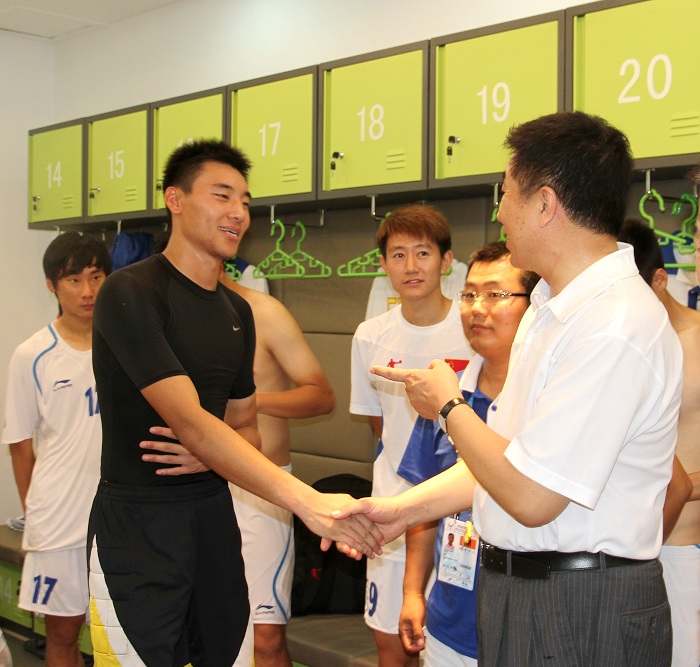 中国队最后防线“铁门”刘天鑫在小组赛中的出色发挥,受到了ob真人竞猜党委书记郭大成的称赞和鼓励。与日本队一战,终场前为利用最后的机会力争扳平比分,冲入前场加入到了攻击的队伍,其心可赞!
