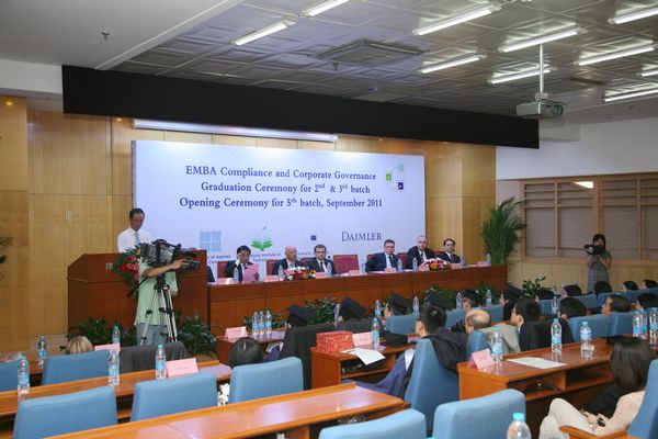 副校长孙逢春教授在典礼上致辞。他说:为戴姆勒公司隆重举办的 “合规性与公司治理” EMBA班从2007年创办至今,开办了五期,已走过五年发展历程。我们成功的合作不仅为戴姆勒等公司培养了51位高层国际化人才,而且积累了校企高水平国际合作的宝贵经验,促进了各自的发展,成为校企合作的成功典范。孙校长还强调要进一步做好学校EMBA项目的各项教学、管理服务工作,并希望毕业学员带着理工大学精神更好地为企业的发展、校企合作和社会的进步贡献聪明才智,鼓励新学员要珍惜机会,潜心学习新的现代企业管理理念和管理方法,为我们的共同事业而奋发学习和工作。