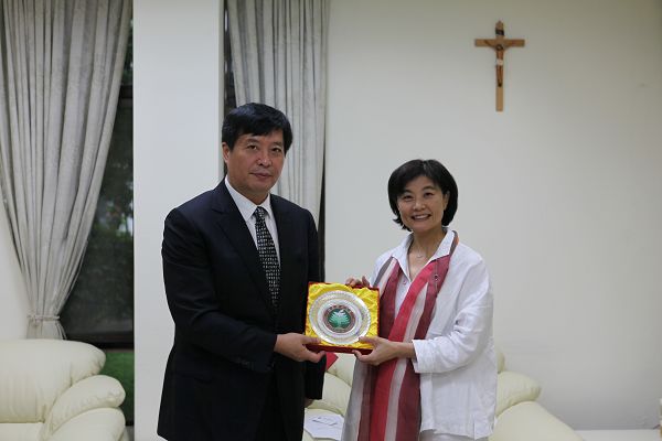 侯光明副书记与辅仁大学的学术副校长林思伶教授互换纪念品