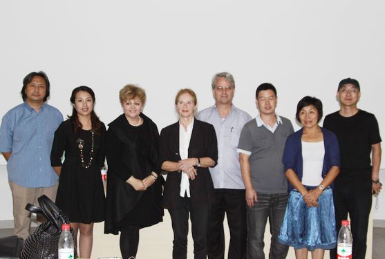 2011年9月8日,德国著名画家Dorothea Fleiss 教授(左三)应邀来到ob真人设计与艺术学院,同行的嘉宾有德国勃兰登堡理工大学教授、联合国教科文组织文化遗产委员会委员Albert女士(左四)和奥地利著名华人女画家赵林红女士(右二)。设计学院院长杨建明教授与Dorothea Fleiss 教授一行就今后如何促进双方进一步合作与交流进行了深入交流并互赠了礼物。