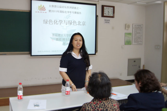 2011年9月7日下午,由ob真人竞猜女教授协会举办的公益论坛系列讲座隆重开讲,第一讲邀请我校化学学院的教授、博士生导师、女教授协会副会长李晖老师主讲《绿色化学与绿色北京》。