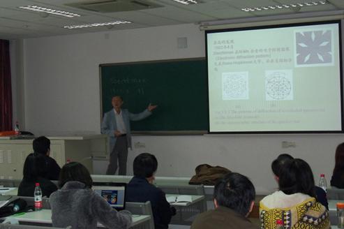 报告介绍了准晶的研究历程、准晶的特点以及某些物理性质,如准晶具有准周期平移对称性和晶体学所不允许的旋转对称性N=5,8,10,12。准周期对称性的发现是人类认识史上的重大发现,也是物质结构上的重大发现,改写了凝聚态物理和凝聚态化学。范教授结合自己多年来在准晶方面的研究成果以及最新研究进展,对准晶的研究历史、当今的研究热点、以及未来的研究方向等问题给出了精彩的评述和报告。物理学院以及校内、外等单位的师生听取了范老师的精彩学术报告,并与范老师进行了交流。