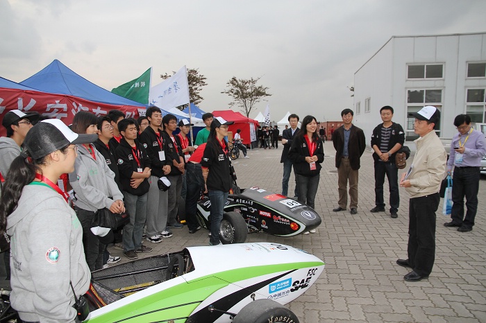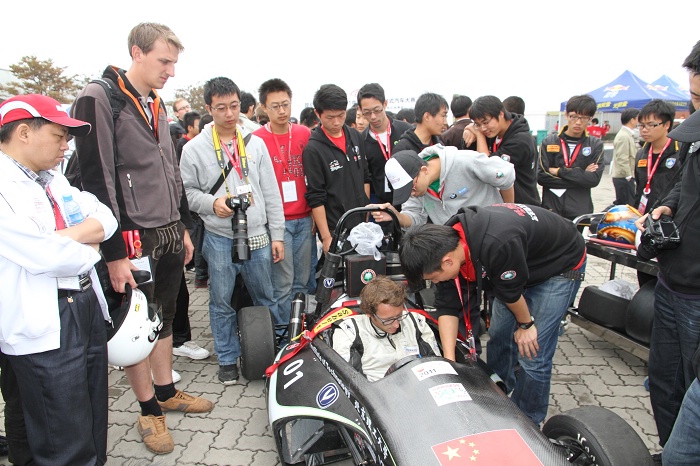 德国慕尼黑工业大学为2010德国大学生方程式汽车大赛的亚军,也曾在诸多国家的赛事中获得前三名,具有丰富的比赛经验。其车辆采用了碳纤维悬架、拨片换档、牵引力控制等技术,曾获得75米直线加速3.7秒的优异成绩,在今年的中国赛中,各项动态项目均为第一名。表演赛中,慕尼黑工业大学赛车获得了单圈1分11秒的最佳成绩,我校车辆单圈最佳成绩为1分13秒。为期一周的比赛已结束,尽管我校最终总排名中力压慕尼黑工业大学夺冠,但各项动态赛事还是显示了中德在汽车技术领域的差距,为我校赛车的不断进步提供了很大帮助。