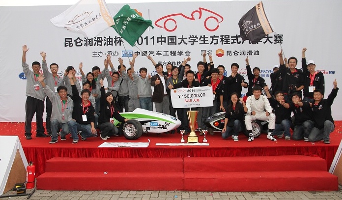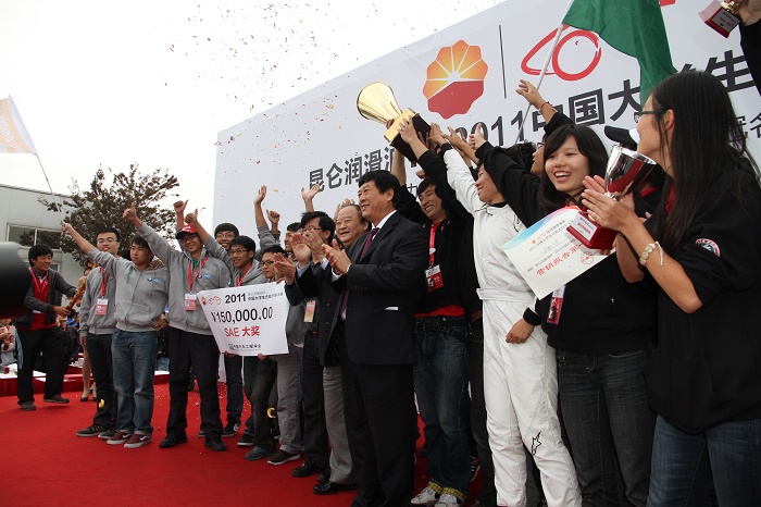 2011年10月21日下午,2011中国大学生方程式汽车大赛在上海国际赛车场落下帷幕。ob真人竞猜长安汽车车队在33支队伍中脱颖而出蝉联该赛事总冠军,并获得了最佳营销报告、造型设计第二名、技术报告第二名、直线加速第三名、八字环绕第三名、高速避障第三名、耐久赛第二名、完赛奖等八项单项奖。德国慕尼黑工业大学在获得多个单项最佳奖的同时以微弱的分差位居总成绩亚军,厦门理工大学位居季军。我校学生制作的宝马车队纯电动方程式赛车也作为唯一的电动赛车首次亮相赛场,并参与演示了高速避障等项目,得到广大企业、高校和媒体的赞扬。