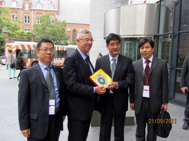 比利时参议院议长彼得斯(Danny Pieters)、中国驻比利时大使廖力强、布拉邦省长洛德维克(Lodewijk De Witte)、鲁汶市长托巴克(Louis Tobback)、比中经贸委员会主席德威特(Bernard De Wit)等出席了开幕式。来自中比政治、教育、企业各界人士200余人参加了这一庆祝中比建交40周年的重要活动。在随后的中国高等教育展上,赵显利副校长与彼得斯议长和廖力强大使等进行了深入交流。