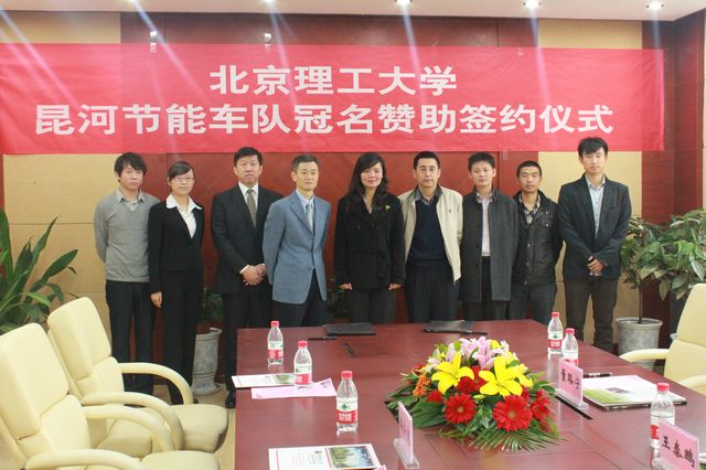10月27日上午,ob真人昆河节能车队冠名赞助签约仪式在机械与车辆学院会议室隆重举行。北京昆河宝珍音响科技有限公司董事长张治谦和总经理梅弘夫、机械与车辆学院党委副书记副院长阎艳以及其他相关人员出席了仪式。节能车俱乐部指导教师张幽彤、学生代表张海云等到场向企业来宾做了该团队、项目的介绍。