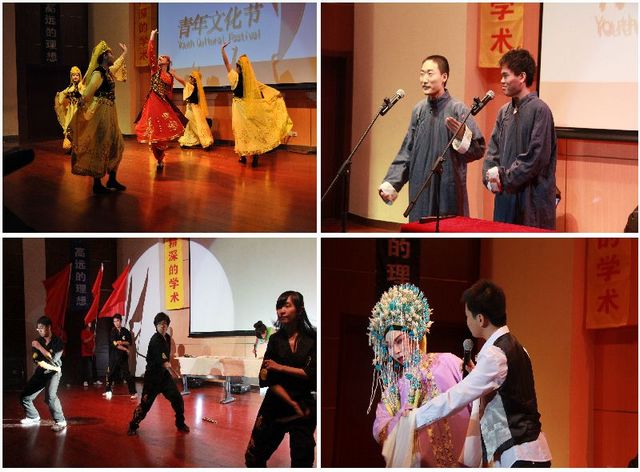 晚会演出了由同学们自编自导自演的民族舞、相声、方言朗诵、民歌、京剧以及空竹和武术表演等三个篇章十二个节目。节目有效的传播了我国深厚的传统文化,展示了多民族各地区的多元文化的魅力,得到了同学们的一致欢迎。晚会在一首《爱因为在心中》后取得了圆满成功。