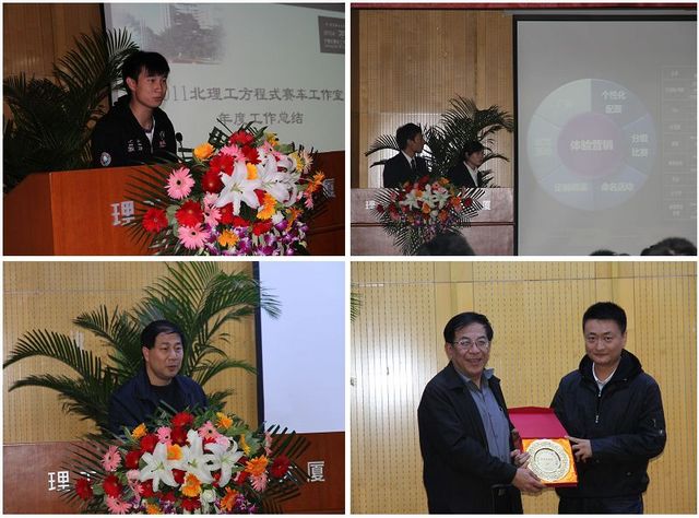团队负责人董路宁代表方程式工作室做了年度工作总结(左上),分别就一年来的历程回顾、感想收获、工作室建设和未来规划做了具体阐述,使得在场观众能够全方面、深层次地了解ob真人竞猜方程式工作室一年来的工作内容和具体收获,同时更加为这群追逐梦想的同学们感到骄傲。为了让在场来宾更深刻感受同学们在这一年中的收获,自动化学院本科生张子萌和管理学院研究生杨允现场重现了商业陈述比赛答辩(商业陈述比赛第一名),清晰的思路、简洁的表达、巧妙的构思和精美的PPT都给观众留下的深刻的印象,也看到了他们背后付出的努力(右上)。