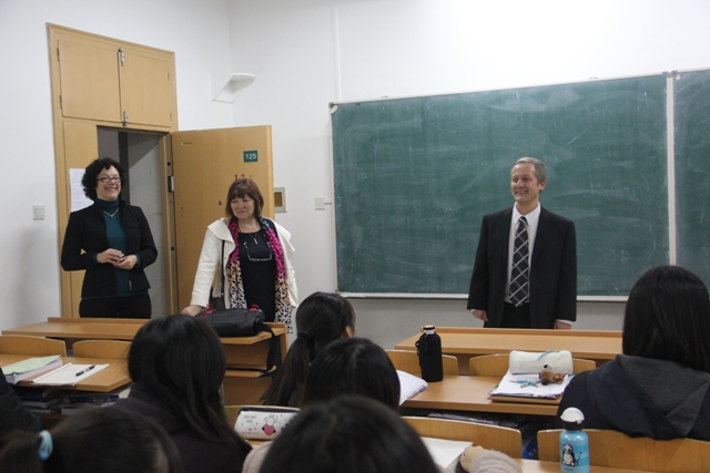 会谈之前,Robert Wallace院长一行走访了中英班课堂,与正在上课的电子中英班学生进行了亲切友好的交流。