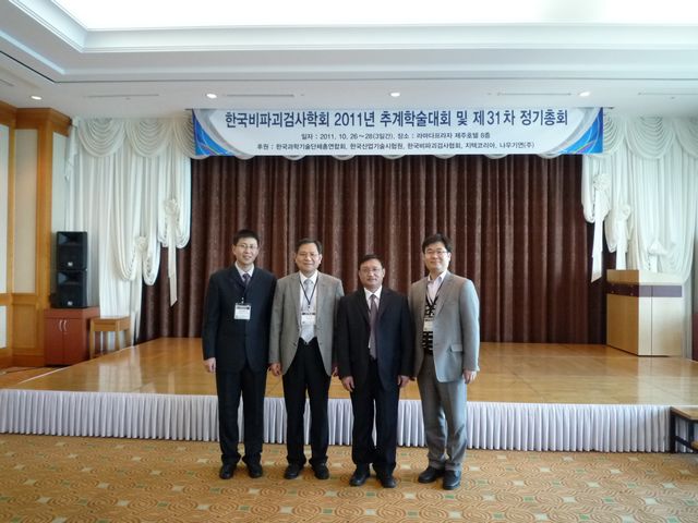 2011年10月26日至28日,ob真人竞猜机械与车辆学院检测与控制研究所和先进加工技术重点学科实验室主任肖定国教授与赵新玉博士受韩国无损检测学会邀请,参加韩国秋季无损检测年会并做大会特邀报告。