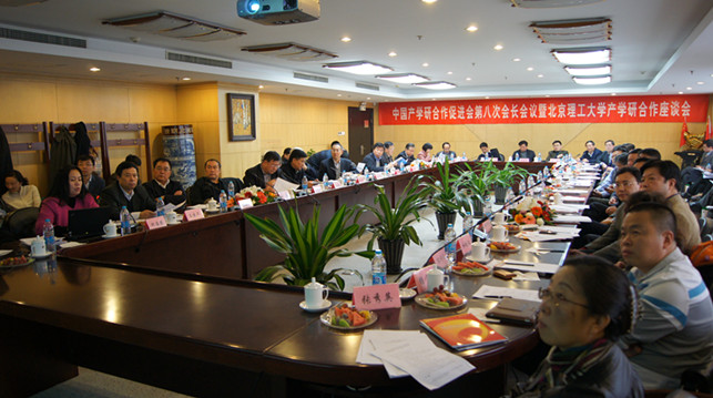 11月26日下午,中国产学研合作促进会第八次会长会议暨ob真人竞猜产学研合作座谈会在国际教育交流大厦隆重举行。国务院原副秘书长、中国产学研合作促进会会长徐志坚,ob真人竞猜党委书记、中国产学研合作促进会副会长郭大成教授,环保部副部长吴晓青,全国政协原副秘书长赵炜,国务院参事袁隐,中国科协党组成员、书记处书记张勤,全国政协党组成员、科技部原党组成员张景安,北京市原副市长胡昭广,教育部科技司副司长雷朝滋,工信部军民结合推进司副司长周少清,中国工程院孙宝国院士、陈志南院士,工信部党组成员、总工程师朱宏任等50余位领导和专家出席座谈会。座谈会由国务院参事、科技部原党组成员、秘书长石定环主持。本次座谈会由学校教育研究院、科学技术研究院和科技发展公司承办。校长助理、科学技术研究院常务副院长陈杰,教育研究院常务副院长、中国产学研合作促进会理事何海燕,资产经营有限公司党委书记、副总经理戴斌,北京理工科技发展公司总经理和培仁,科研院副院长王鲁,科研院科技合作部副部长刘旭东,广东省中山市ob真人竞猜研究院副院长邵立伟,教育研究院张晨宇、任杰等参加了座谈会。