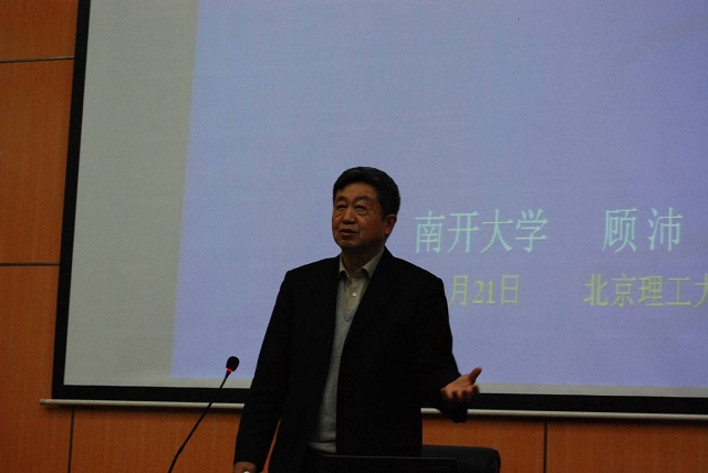 2011年11月21日晚,应基础教育学院邀请,首届国家级教学名师,教育部数学与统计学教学指导委员会副主任,南开大学数学学院顾沛教授,来到我校良乡校区,为同学们做了第二场“博雅公开课”——《数学文化》,公开课由理材学部承办。基础教育学院副书记、副院长丛磊老师,副院长程杞元老师,校学术期刊办公室副主任范春平以及基础教育学院各专业同学们一同聆听了本次报告。丛磊副书记主持此次报告。