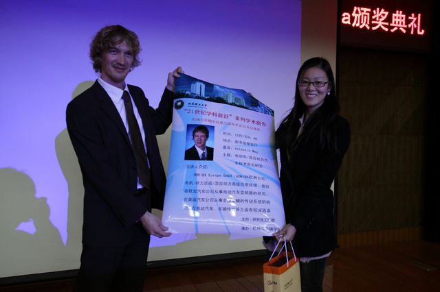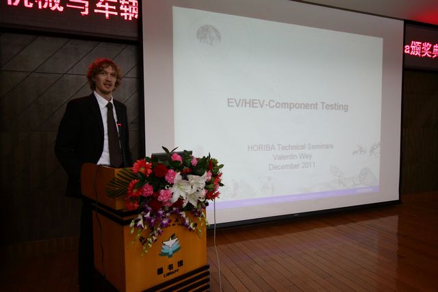 随后HORIBA Europe高级应用经理 Valentin Wey应邀为本届学术论坛做开坛报告,Valentin Wey 结合Horiba公司产品,为大家做了题为《电动车/混合动力汽车前沿技术》的学术报告,报告中与同学们积极交流,学术讨论氛围浓厚。