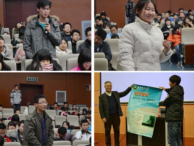 陈院长从数学的历史、现状和发展三个方面深入浅出地漫谈数学。从人们最开始在商业、土地测量等实际生活中提出数学问题,然后在天文学、物理学中发现更深奥的数学问题,到数学与其他学科融会贯通,其各个分支之间也相互交融。随着科学技术的日益发展,数学的发展在各学科中得到了验证,同时数学的发展又超前于其它学科,为其它学科的研究提供了理论支持与方法。并用很多实例为同学们分析了抽象的数学原理如何将问题化繁为简,解决实际生活中的问题。
