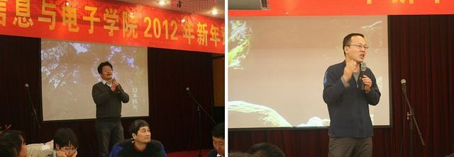 2012年1月12日,信息与电子学院2012年新年联欢会隆重举行,全体教职工欢聚一堂,共迎新春。副校长赵显利出席团联欢会,曾经在信息学院工作和学习过的校职能部门和其他学院的部分领导和老师也应邀参加了联欢会。联欢会由青年教师刘渊和刘娜主持。