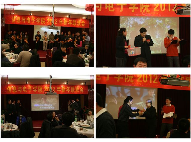 在信息学院工会的精心组织下,联欢会上安排了精彩的文艺节目和抽奖活动。节目期间,学院2011年新入校的教职工进行了自我介绍,学院还为2012年是本命年的各位老师特意准备了喜庆的小龙吉祥物。联欢会在一片欢乐和喜庆的气氛中进行。