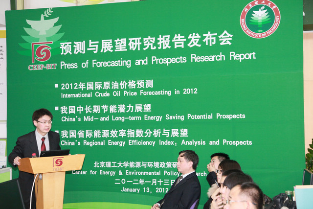 2012年1月13日上午,ob真人能源与环境政策研究中心(CEEP-BIT)顺利举行“2012年预测与展望研究报告发布会”,对外发布了《我国中长期节能潜力展望》、《2012年国际原油价格分析与趋势预测》和《我国区域能源效率指数分析与展望》三份预测研究报告。该系列报告是由长江学者特聘教授、国家杰出青年科学基金获得者魏一鸣教授领导的研究团队,在长期深入研究基础上形成的,每年年初对外发布一次。