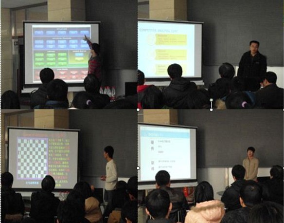本次寒假集训总结会以各项目组进行项目汇报为主,旨在了解大家的项目进程,加强不同项目之间的交流,以此来促进同学们之间的学习。会上参训的所有项目就项目背景、解决方案与创新点、项目进展、遇到的问题、后继规划、集训的收获等方面进行了汇报。本次集训充分展示了“梦想、激情、简单、高效”的集训理念,在短短的22天的集训中,参训的21个项目组都取得了可喜的进步,尤其是“飞思卡尔”智能车、计算机博弈、机器人足球中型组等项目组更是取得了突破性的进展。22天的集训生活给同学们带来的不仅是技术水平的提升,还有对“不怕苦 不怕累 团队协作 创新求精 软件报国”这一“锅炉房精神”的切身体会,使每一位参训同学都得到了锻炼,培养了吃苦耐劳、不畏困难、团队协作的优秀品质。