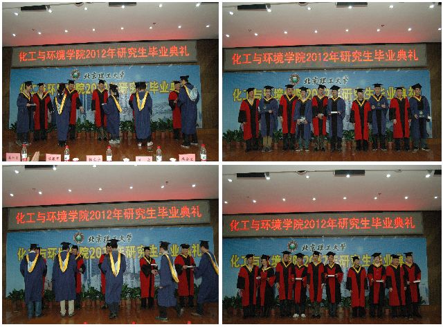 孙克宁、陈实、吴伯荣、朱长进、赵之平五位教授为毕业生们授予了学位,并合影留念。今天我们不是庆祝“结束”,而是欢呼“开始”;不是纪念“完成”,而是宣布“进步”,化工学子必将秉承实事求是、脚踏实地的精神,在人生征程中创造新的辉煌!